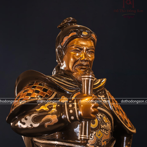 Tượng Trần Quốc Tuấn bằng đồng đỏ khảm ngũ sắc cao 50cm