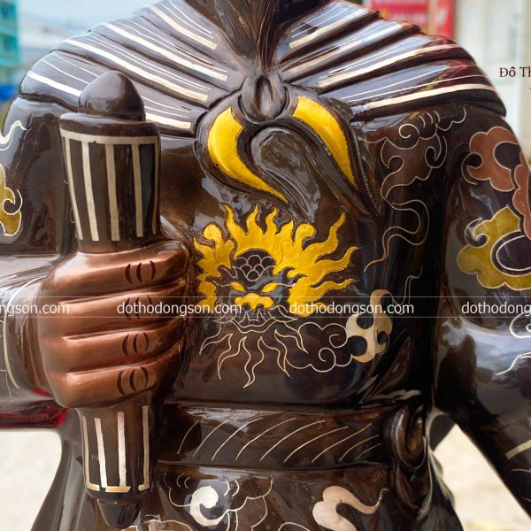– Họa tiết tinh tế: Tượng Trần Quốc Tuấn bằng đồng được tạo hình bằng khuôn đất, sau đó chỉnh sửa chi tiết thủ công tỉ mỉ bằng tay nên mỗi bức tượng sẽ sở hữu thần thái có nét riêng biệt, thể hiện đầy đủ phong thái và khí chất của Người. Một số bức tượng bằng đồng cao cấp còn được mạ vàng, khảm tam khí ngũ sắc để tăng sự sang trọng, quý phái nơi thờ tự.