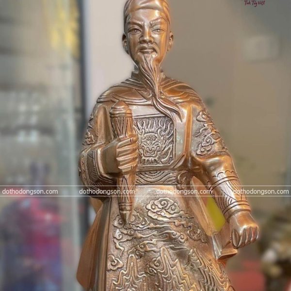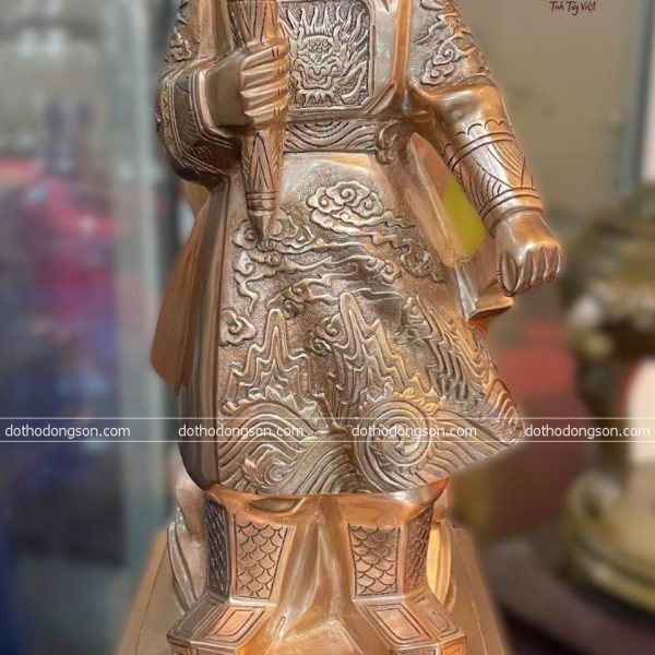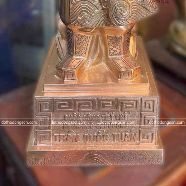 – Họa tiết tinh tế: Tượng Trần Quốc Tuấn bằng đồng được tạo hình bằng khuôn đất, sau đó chỉnh sửa chi tiết thủ công tỉ mỉ bằng tay nên mỗi bức tượng sẽ sở hữu thần thái có nét riêng biệt, thể hiện đầy đủ phong thái và khí chất của Người. Một số bức tượng bằng đồng cao cấp còn được mạ vàng, khảm tam khí ngũ sắc để tăng sự sang trọng, quý phái nơi thờ tự.