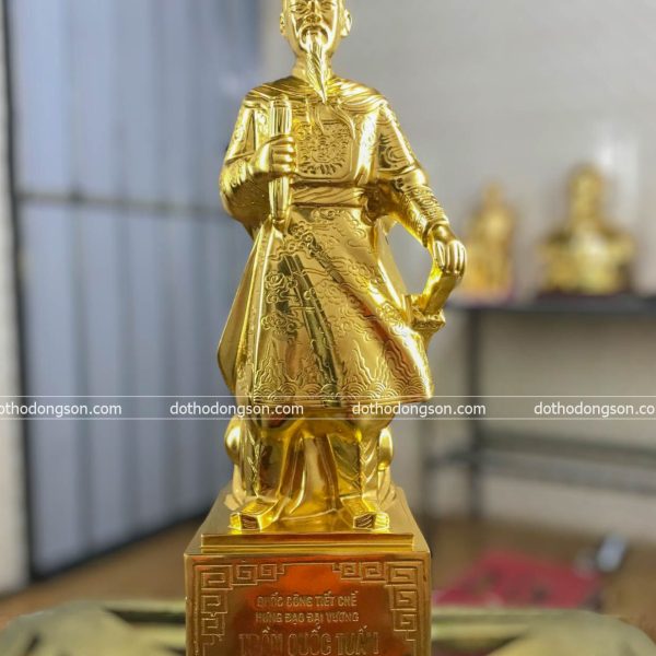 – Họa tiết tinh tế: Tượng Trần Quốc Tuấn bằng đồng được tạo hình bằng khuôn đất, sau đó chỉnh sửa chi tiết thủ công tỉ mỉ bằng tay nên mỗi bức tượng sẽ sở hữu thần thái có nét riêng biệt, thể hiện đầy đủ phong thái và khí chất của Người. Một số bức tượng bằng đồng cao cấp còn được mạ vàng, khảm tam khí ngũ sắc để tăng sự sang trọng, quý phái nơi thờ tự.