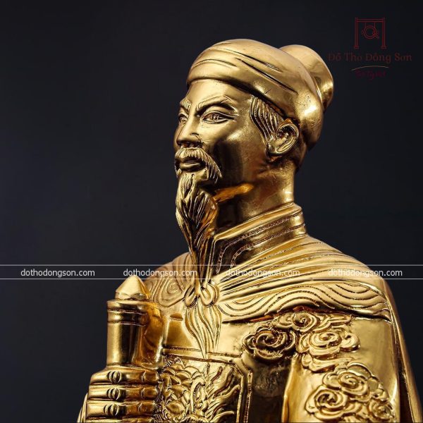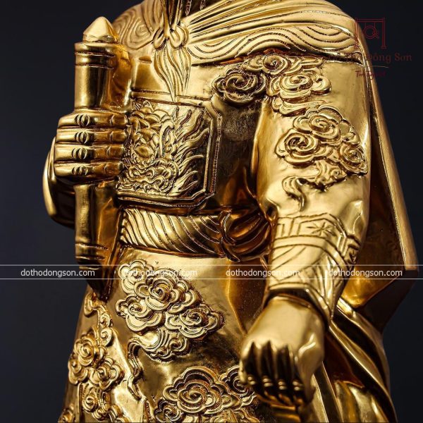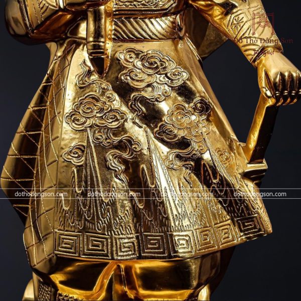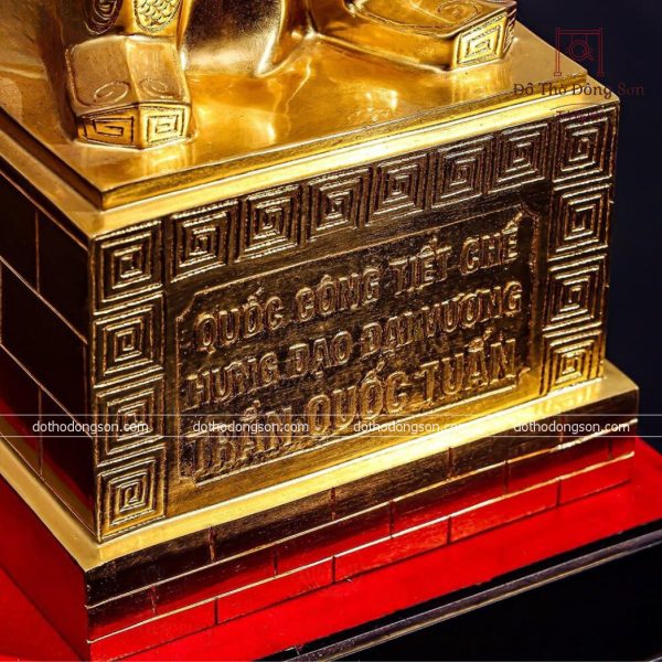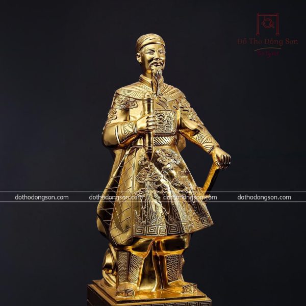 – Họa tiết tinh tế: Tượng Trần Quốc Tuấn bằng đồng được tạo hình bằng khuôn đất, sau đó chỉnh sửa chi tiết thủ công tỉ mỉ bằng tay nên mỗi bức tượng sẽ sở hữu thần thái có nét riêng biệt, thể hiện đầy đủ phong thái và khí chất của Người. Một số bức tượng bằng đồng cao cấp còn được mạ vàng, khảm tam khí ngũ sắc để tăng sự sang trọng, quý phái nơi thờ tự.