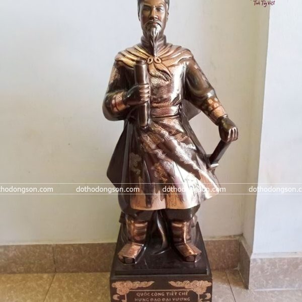 – Họa tiết tinh tế: Tượng Trần Quốc Tuấn bằng đồng được tạo hình bằng khuôn đất, sau đó chỉnh sửa chi tiết thủ công tỉ mỉ bằng tay nên mỗi bức tượng sẽ sở hữu thần thái có nét riêng biệt, thể hiện đầy đủ phong thái và khí chất của Người. Một số bức tượng bằng đồng cao cấp còn được mạ vàng, khảm tam khí ngũ sắc để tăng sự sang trọng, quý phái nơi thờ tự.