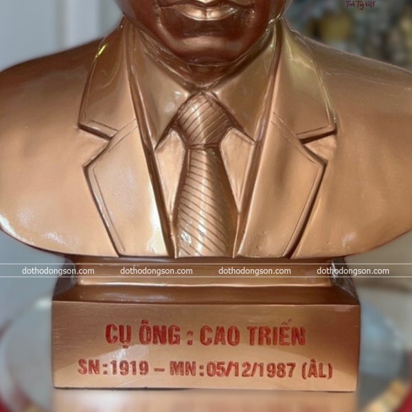 – Họa tiết tinh tế: Tượng Truyền Thần bằng đồng được tạo hình bằng khuôn đất, sau đó chỉnh sửa chi tiết thủ công tỉ mỉ bằng tay nên mỗi bức tượng sẽ khắc họa chi tiết chân dung người đã khuất. Một số bức tượng bằng đồng cao cấp còn được mạ vàng, khảm tam khí ngũ sắc để tăng sự sang trọng, quý phái nơi thờ tự.